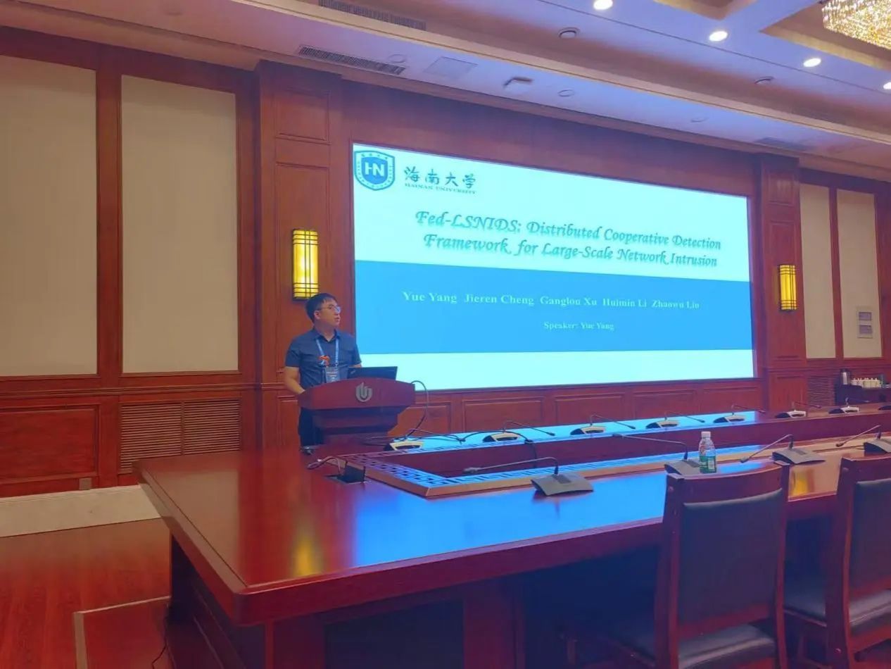 2024年,杨越的脚步走出了实验室,深入基层,将网络安全的种子播撒到更广阔的土地。在儋州市人民医院,他受邀为200余名医护人员开展海南省职工素质教育培训,用通俗易懂的方式,让医疗战线的一线工作者深刻认识到数据安全在日常诊疗和医院管理中的重要性。在海南某部队,他充分发挥专业优势开展网络安全知识普及,通过模拟DDoS攻击从发生、检测到最终拦截的全过程,帮助官兵熟悉军事信息系统的防护技能,提升战场网络安全意识。2025年,当DeepSeek等国产企业遭遇DDoS攻击的冲击时,杨越在网络安全领军企业北京天融信网络安全技术有限公司的资助下,研发基于深度学习的DDoS攻击检测系统,为快速、精准地检测和分析安全事件提供海大方案。