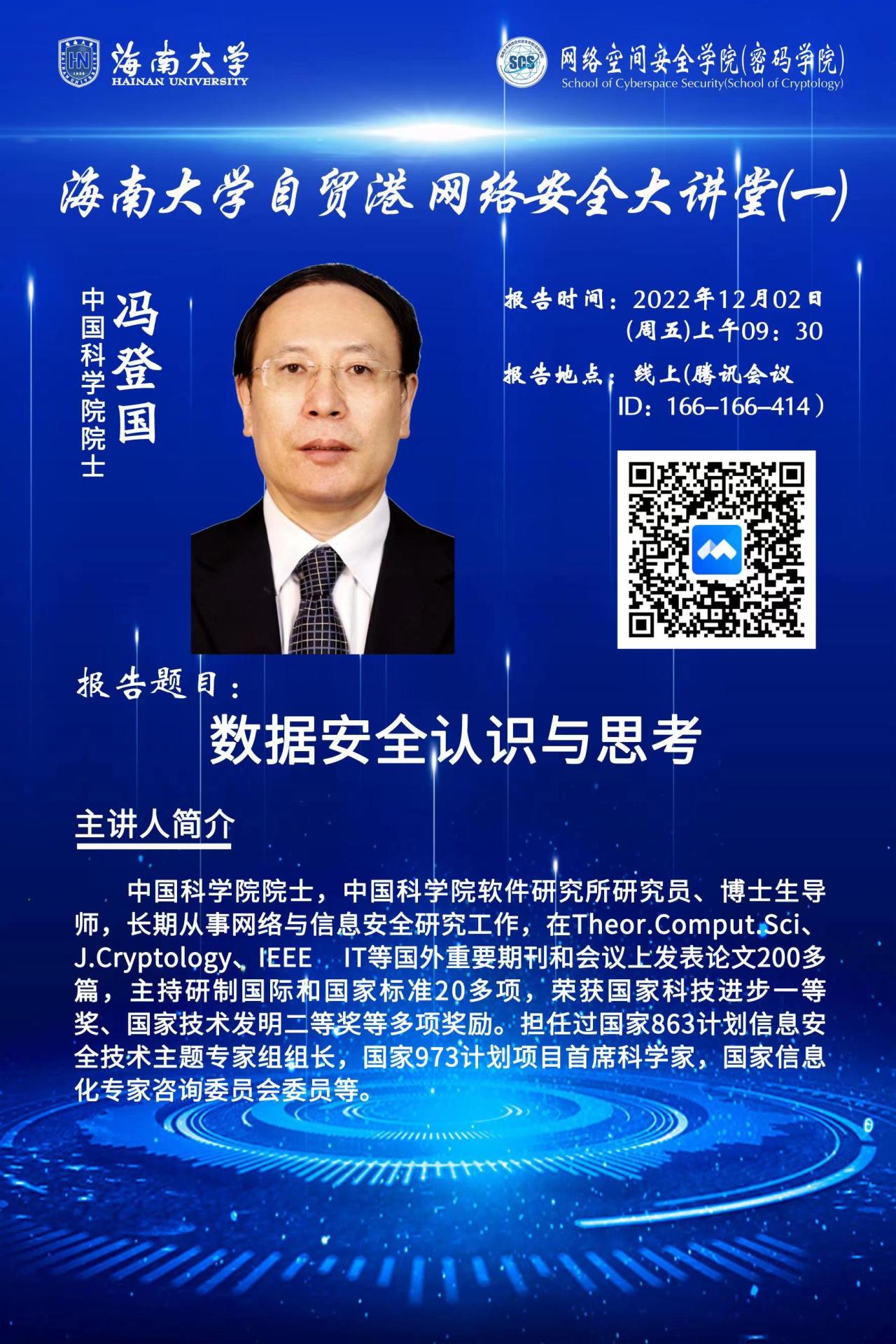 【英国365集团官网自贸港网络安全大讲堂(一)】数据安全认识与思考--冯登国