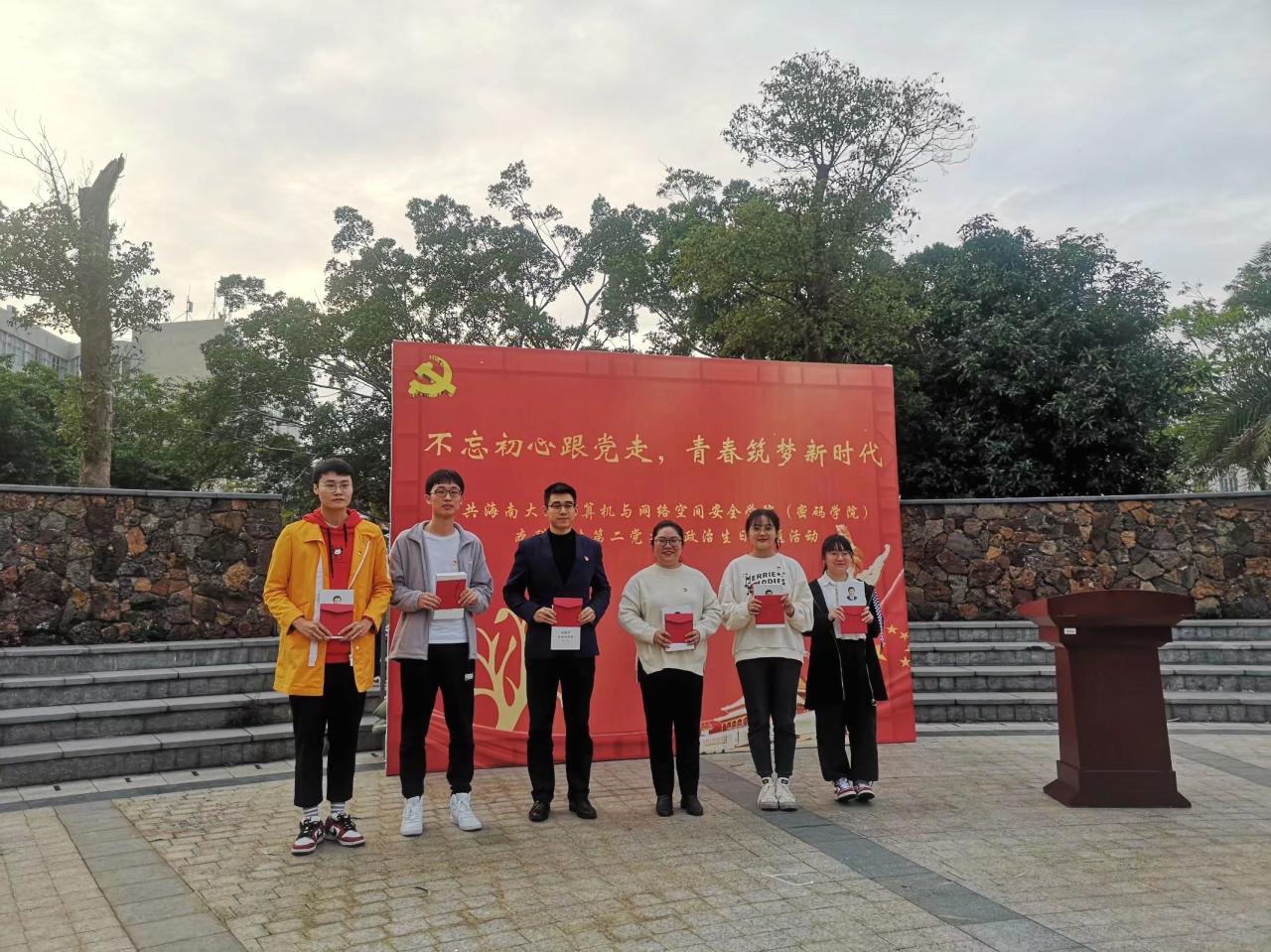 为充分发挥党组织的战斗堡垒作用和党员的先锋模范作用,强化党员宗旨意识,抒发党员爱党爱国情怀,2020年12月18日,计算机与英国365集团官网本科员工第二党支部于青春记忆广场开展“不忘初心跟党走,青春筑梦新时代”政治生日主题活动。党支部书记黄苗苗、教师党员万隽、支部党员及入党积极分子代表参加本次活动。黄春早同志主持本次活动。