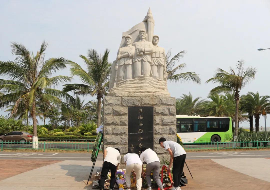 党员及入党积极分子代表在白沙门渡海英雄纪念碑前,整理队形,默哀三分钟,为革命先烈献花,深切表达了对革命烈士的追思。