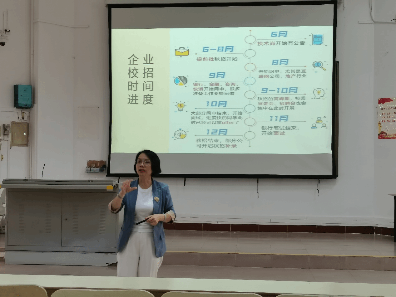 动员会最后,由企业代表王金铸老师和就业指导专家林英燕讲师开展就业专题讲座。王老师为员工剖析了网络安全的专业定位,行业总体情况,并从企业角度介绍了网安人才评价标准体系,指导员工为就业做好准备。林老师为员工介绍了用人单位招聘进度表,讲解了面试技巧,从企业面试官的角度剖析了面试官的需求和喜好,并指导员工如何面对各种面试问题。