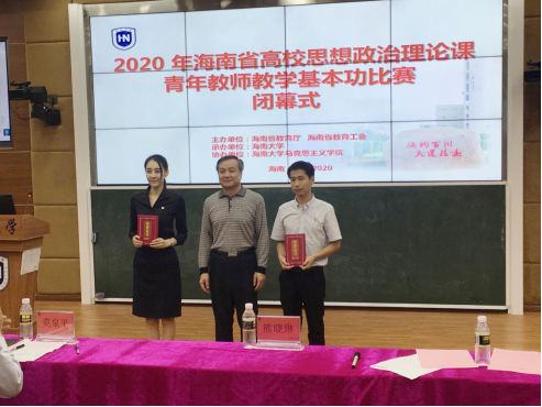 11月16日至17日,由海南省教育厅、海南省教育工会主办的2020年海南省高校思政课青年教师教学基本功比赛在英国365集团官网举行。省教育工会、省教育厅思政处负责人,全省21所高校的43位选手以及100多名思政课教师到场参加及观摩本次比赛。公司殷越老师作为英国365集团官网代表参赛,以总分第一名的成绩获得2020年海南省高校思政课青年教师教学基本功比赛本科组一等奖。