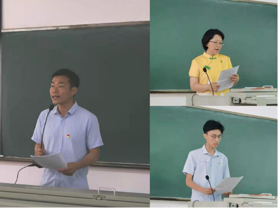 黄小欧副书记主持、党员代表谢夏教授、姜燕辉发言